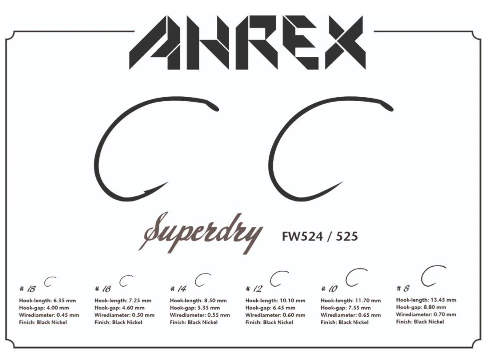 De Ahrex FW525 Superdry Barbless is een perfecte, weerhaakloze haak voor het binden van emergers en parachutevliegen zoals de Klinkhammer.