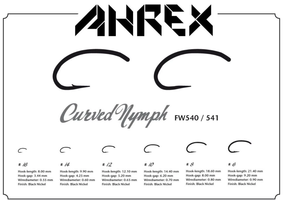 De Ahrex FW541 Curved Nymph Barbless vliegbindhaak heeft het geliefde, gebogen nimfhaakontwerp, waardoor bijna alle nimfen die je ermee gaat binden, er goed uit zullen zien.