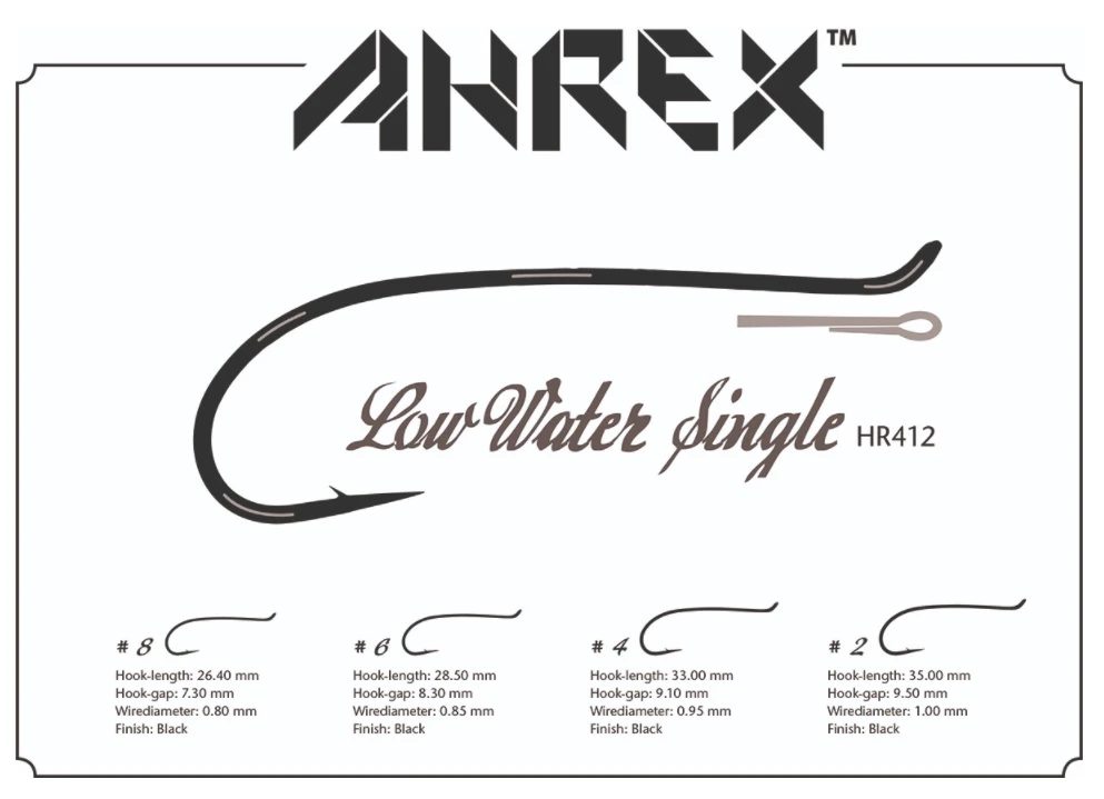 The slightly curved shape of the HR412 matches the style of lowwater flies and speyflies nicely. Classic lowwater design with a tapered loop-eye.