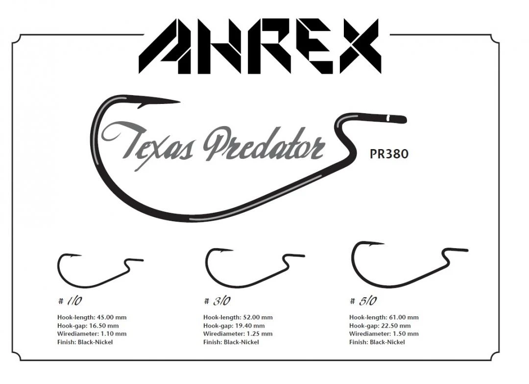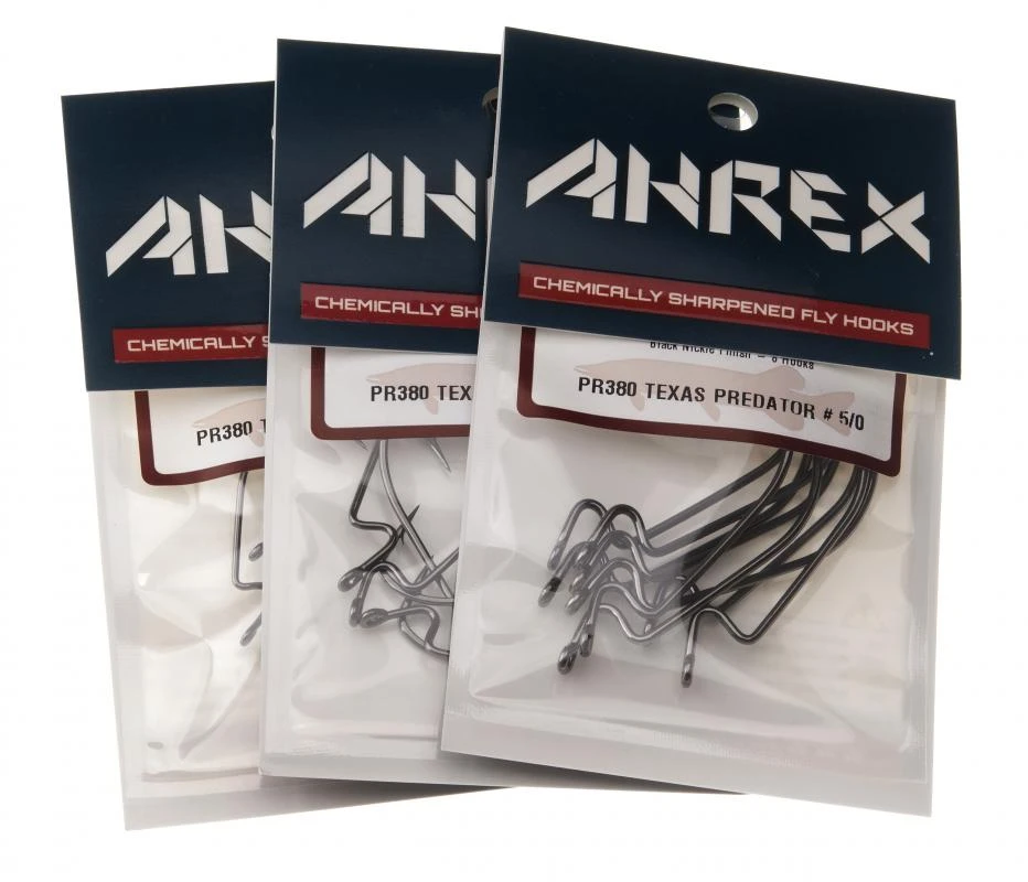 De Ahrex PR380 Texas Predator Hooks waren oorspronkelijk niet gemaakt voor het vliegvissen maar voor Texas Rigs. De PR380 werkt echter heel goed voor het vliegvissen in wateren met veel waterplanten of wanneer je dicht langs de bodem wilt vissen zonder al te vaak onbedoeld vast te raken.