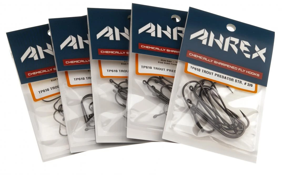 Ahrex TP610 Trout Predator Streamer Hooks zijn de meest populaire streamer haken van dit moment. Dat is ook niet zo gek want ze zijn uitstekend te gebruiken als allround haak voor allerlei soorten streamers. De TP610 is uitgevoerd met een Aberdeen hybride haakbocht en met een sterke draad. De grote haakopening helpt bij de actie van de vlieg en bij de inhakingskansen van streamers met veel volume, hertenhaar- en muispatronen.