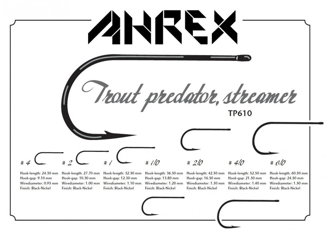 - Nu ook verkrijgbaar in een extra voordelige voordeelverpakking met alle 7 de maten. In totaal 80 Ahrex Trout Predator Streamer haken!