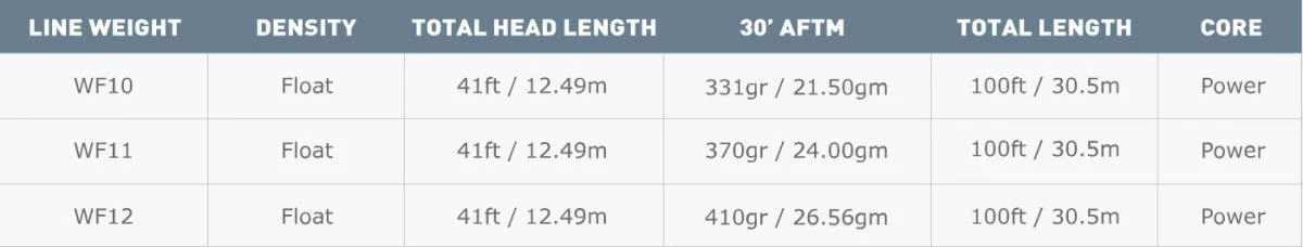 De vliegenlijn heeft lussen aan beide uiteinden voor een gemakkelijke en sterke verbindingen van backing en leader. De vliegenlijn is volledig drijvend en is 30,5 meter lang.