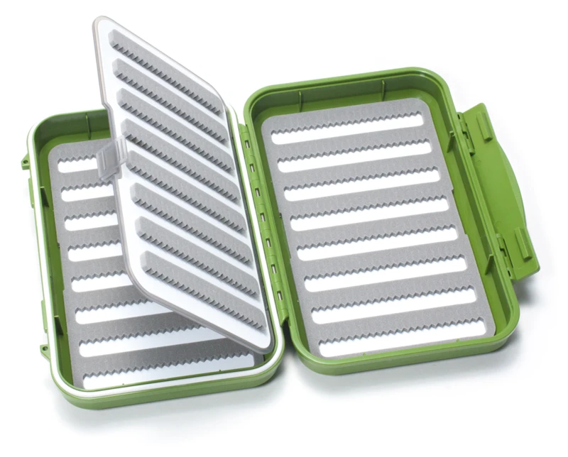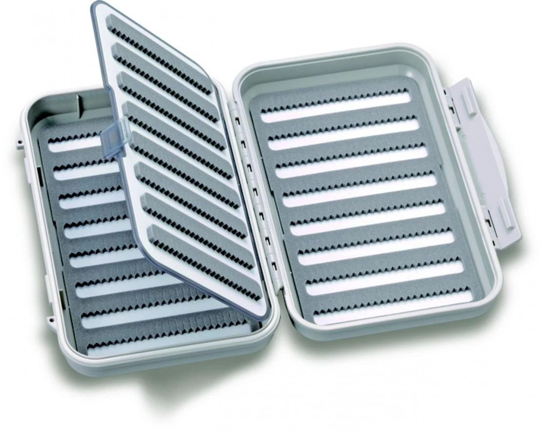De C&F 16 Row With Flip Waterproof Medium Fly Case – CF-2508F is een vliegendoos die een zeer groot aantal kleine droge vliegen kan bevatten.