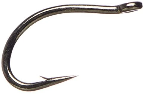 This Daiichi fly fishing hook has a continuous bend, up eye, 1X short shank, 1X fine wire, forged, golden finish