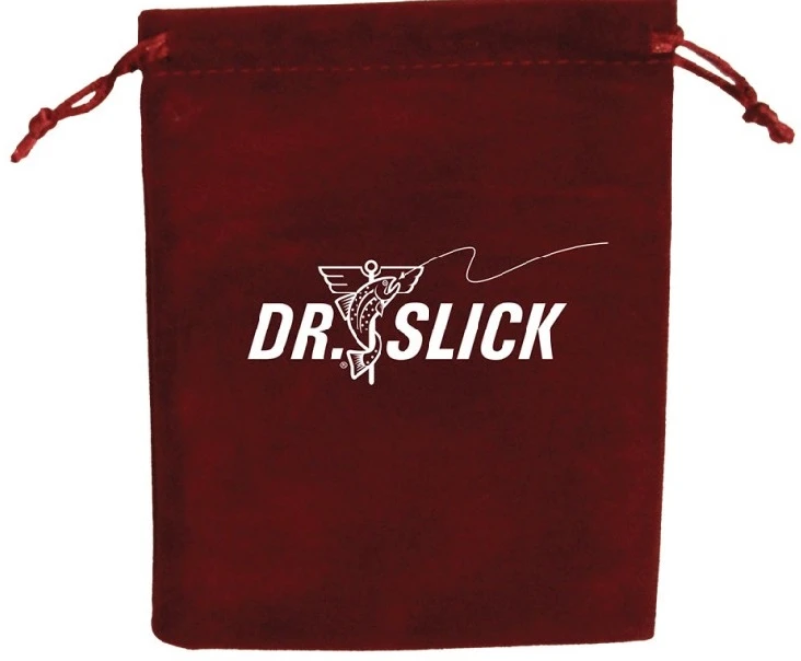 Velvet drawstring knick knack bags with Dr. Slick logo.