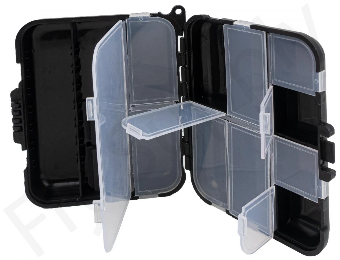 Door de verschillende formaten van de vakindeling is deze doos uitermate geschikt voor het opbergen van droge vliegen, nimfen en kleine streamers. Ook is het handig om een aantal beetverklikkers in deze doos op te bergen.