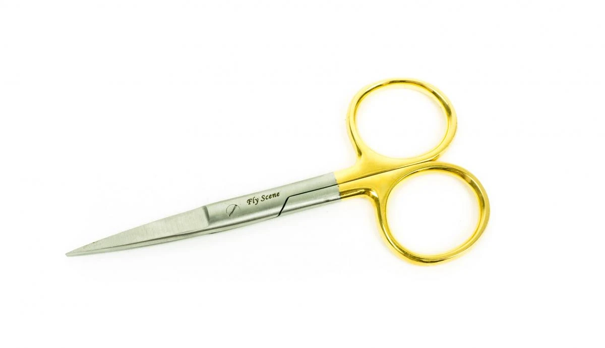 Deze allround schaar met rechte punt is ideaal voor het knippen van bucktail en ander grover materiaal. Voorzien van grote loops voor de vingers.