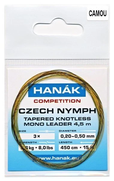 De Hanak Czech Nymph Leader is een extra zachte en knooploze nimfleader met een minimum aan geheugen, voor een soepele en accurate presentatie van de kunstvlieg.