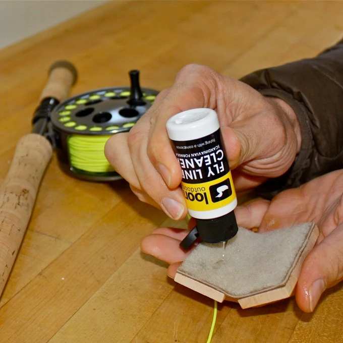 - Wrijf de vliegenlijn schoon om het teveel te verwijderen