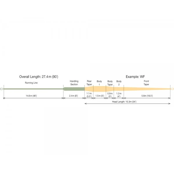 - Een drijvende lijn met drie meter aan Hover zinkende lijn, dan drie meter van intermediate zinkende lijn aan de voorkant (F / H / I), voor het vissen in de bovenste twee tot vier voet/60 – 120 cm