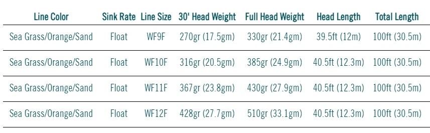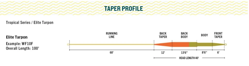 - Moeiteloos werpende, nauwkeurig ontworpen vliegenlijn dat de typische tarponvliegen en leaders met gemak over laat slaan