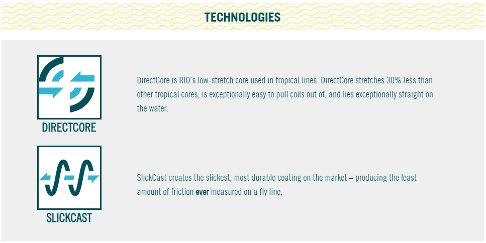 De RIO Products Elite Tarpon Floating Fly Lines Sea Grass/Orange/Sand zijn voorzien van korte, krachtige front tapser om gemakkelijk grote vliegen te werpen en een lange achterste taper voor stabiele worpen over grotere afstanden, een snel opnemen van de vliegenlijn en de mogelijkheid om bewegende vissen opnieuw aan te werpen. Elke vliegenlijn is gebouwd op RIO Products DirectCore met nauwelijks rek, deze is uiterst gemakkelijk te strekken en ligt perfect recht op het water, maar behoudt de stijfheid die nodig is om te werpen onder warme omstandigheden. Bovendien is deze vliegenlijn gebouwd met SlickCast, de gladste, meest duurzame coating op de markt – met de minste hoeveelheid wrijving ooit gemeten in een vliegenlijn.
