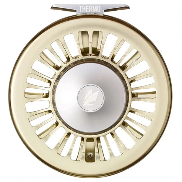 Beginnend met het nieuwe, ultra robuuste SCS slipsysteem dat specifiek gebouwd en getuned is voor het extreme, waarmee de Sage Thermo Champagne Fly Reel tussen de 0 en 20 lbs slipkracht levert met een ongekende consistentie van de slipkracht tijdens de gehele run van de vis. Geen wegvallen, haperen of slijtage vanwege oververhitting, de Thermo is uitstekend bestand tegen het extreme, omdat het slipsysteem de hitte effectief verdeelt over het geheel afsloten slipsysteem met extra grote, carbon slipschijven. Twintig goed zichtbare instelling bovenop een slipknop van grote diameter, dat een zeer goede grip biedt en gemakkelijk bijgesteld kan worden tijdens de hitte van de strijd, terwijl 39 nokken de mogelijkheid bieden om de slip precies af te stemmen op elke combinatie van leader en tippet. Het extra sterke frame en spoel zijn ontworpen om bestand te zijn tegen de vereisten van het bootvissen, waar een klap tegen het bolboord of een keiharde run door de brekende golven niet ongewoon is. Met een indrukwekkende, slingergreep met een grote diameter voor maximale grip en controle, plus een spoel met een grote spoelkern voor een hoge inhaalsnelheid en een capaciteit van 450 meter backing, is de Sage Thermo Champagne Fly Reel de ultieme powerhouse onder de big game vliegenreels.
