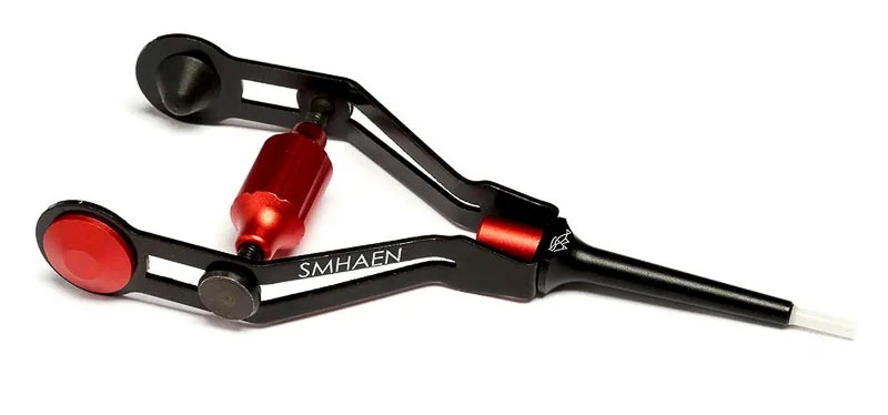The Smhaen Bobbin Holder Pro is the only super functional, micro adjustable-tension fly tying bobbin holder in the world today. Whether you’re a beginner or a professional fly tier the bobbin holder delivers maximum thread control, thanks to a unique patented tension system, placed so you are able to adjust tension with only one finger, while still working on your fly. Thanks to the perfectly designed ergonomic frame shape, you don’t even feel the internal tension system in your hand. A ceramic tube, and the well balanced bobbin holder, gives you perfect thread control.