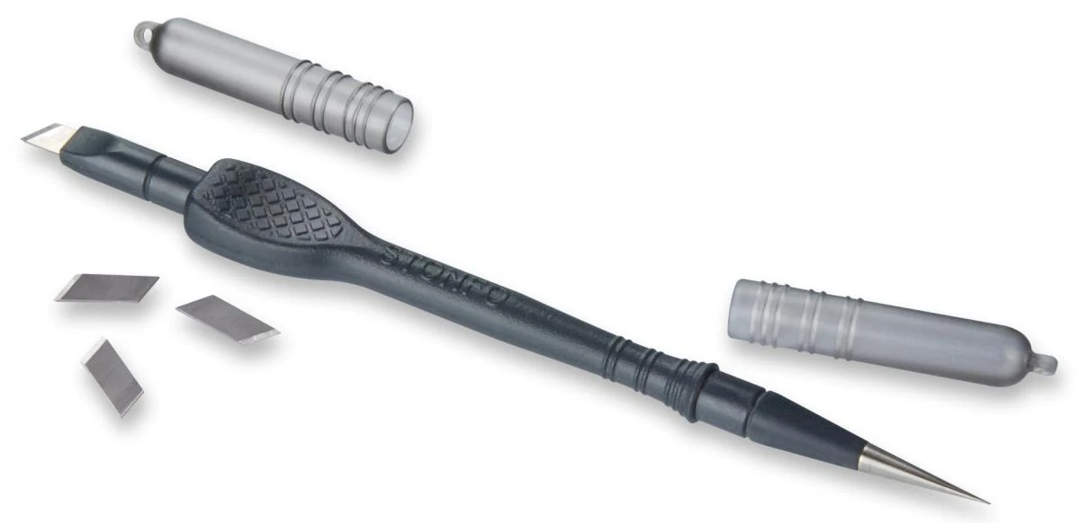 Precision cutter indispensable for the finishing of your flies. At the other end the tool is equipped with a short and sharp needle in stainless steel useful when tying. Supplied with three spare blades.