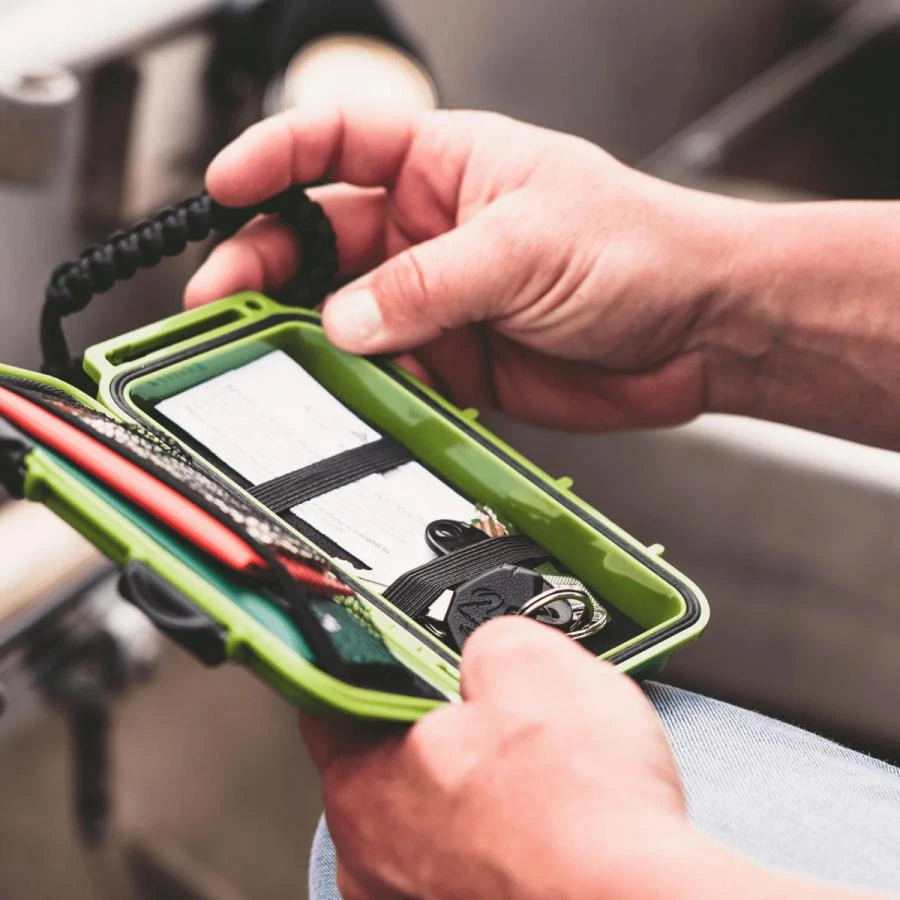 The Trxstle River Locker is designed to take abuse and still keep your essentials safe. Secure it to your drift boat, use it on your SUP, throw it in your pack – however you use it, the River Locker has you covered. To keep everything neat, tidy and held in place while stored inside, we equipped the box with two interior elastic straps, EVA foam insert and mesh pocket. Para-cord style lanyard included.