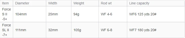 Sinds ze in 1997 op de markt verschenen, hebben de Force reels nagestreefd wat volgens vliegvissers écht belangrijk is voor de prestaties van de vliegenreel: het leveren van de hoogst mogelijke verhouding van inhaalsnelheid tot reelgewicht met een uitzonderlijk goed remsysteem. Waar veel andere Super Arbor reels gewicht toevoegen om snelheid te winnen, blijven ULA Force II SL vliegenreels extreem licht in gewicht.